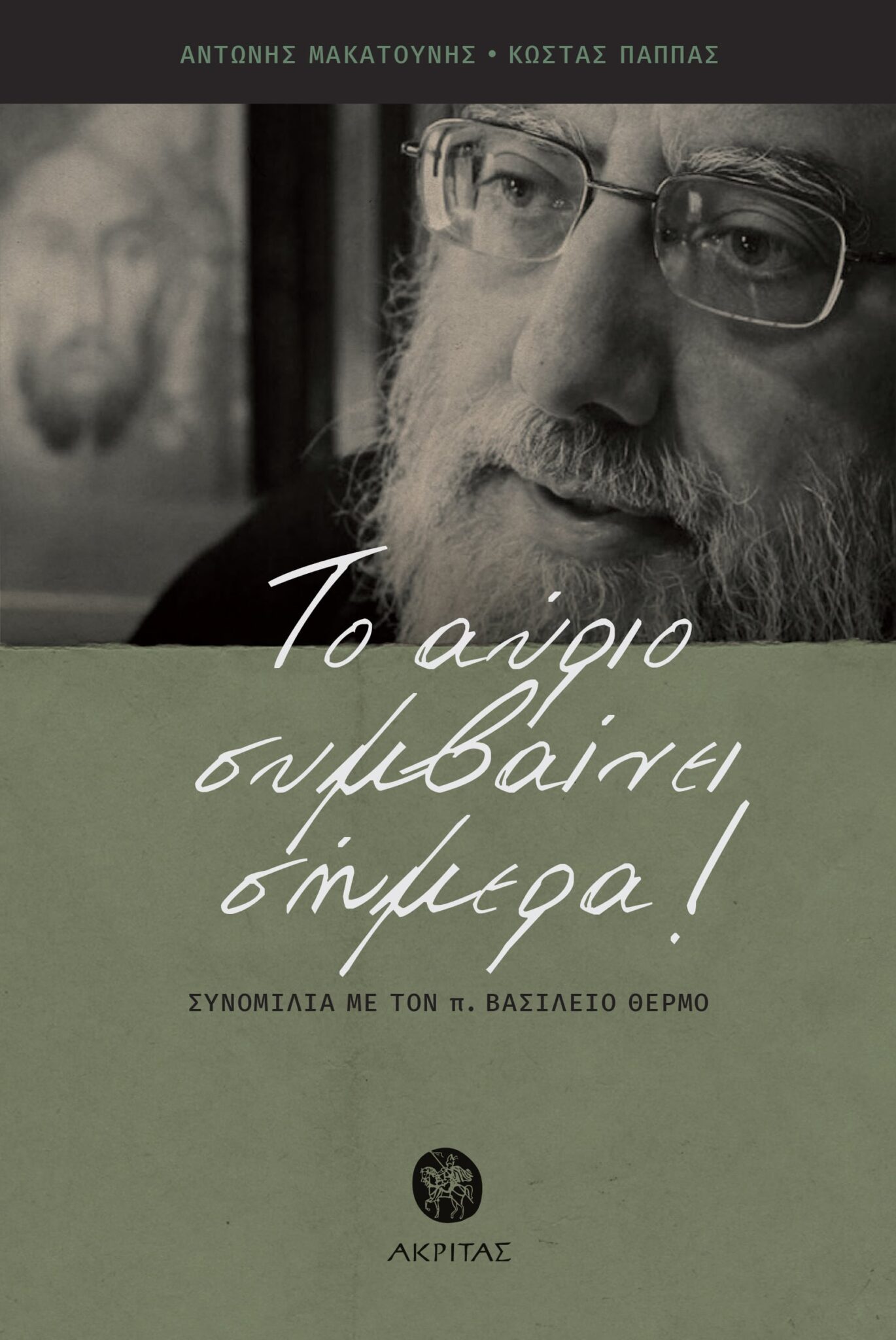 Μία σειρά συνεντεύξεων του Παιδοψυχιάτρου και Θεολόγου π. Βασίλειου Θερμού στους δημοσιογράφους Αντώνη Μακατούνη και Κώστα Παππά, που συνδυάζουν την παρουσίαση προσωπικών βιωμάτων και εμπειριών αλλά και την κριτική επισκόπηση των δρωμένων της εποχής που διανύουμε. Δεν μπορούμε να αλλάξουμε το παρελθόν μας. Έχουμε τη δυνατότητα, όμως, να το αξιοποιήσουμε για να γίνουμε αντάξιοι των ιστορικών συνθηκών στις οποίες ζούμε. Οι προκλήσεις της εποχής μας αποτελούν ένα προνομιακό πεδίο για να συνεργασθούν η Πίστη μας με την Ψυχολογία. Όταν υπάρχει καλή πρόθεση μπορούμε να αντλήσουμε και από τις δύο την αλήθεια. Μία αλήθεια που δεν γίνεται ποτέ αντιληπτή χωρίς διαρκή και έντιμη σπουδή στην αλήθεια του εαυτού και του προσώπου μας. Τα «καυτά» θέματα που αναλύονται στη συζήτηση με τον π. Βασίλειο είναι: Οι νέοι σήμερα, οι ψυχικές διαταραχές, ο έρωτας, το σεξ, η ομοφυλοφιλία, η βία, η επιθετικότητα και ο θάνατος. Η έκδοση εμπλουτίζεται με πλούσιο φωτογραφικό υλικό από το προσωπικό αρχείο της οικογένειας του π. Βασιλείου Θερμού.